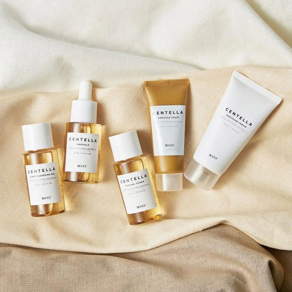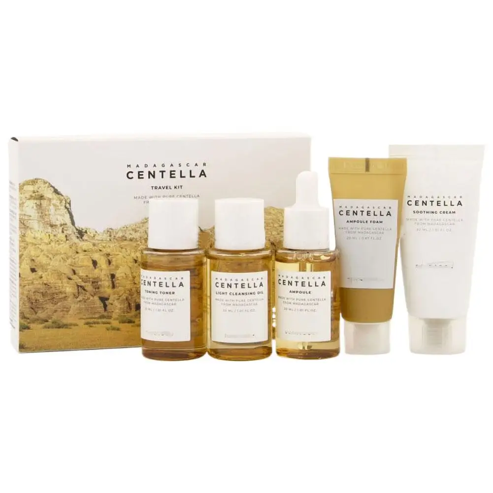 🌱 What is it - Experience the soothing power of nature with our exclusive Centella Skincare Set, specially formulated with Centella Asiatica extracts. This travel-friendly five-piece set includes a cream, toner, and more to nourish your skin on the go!